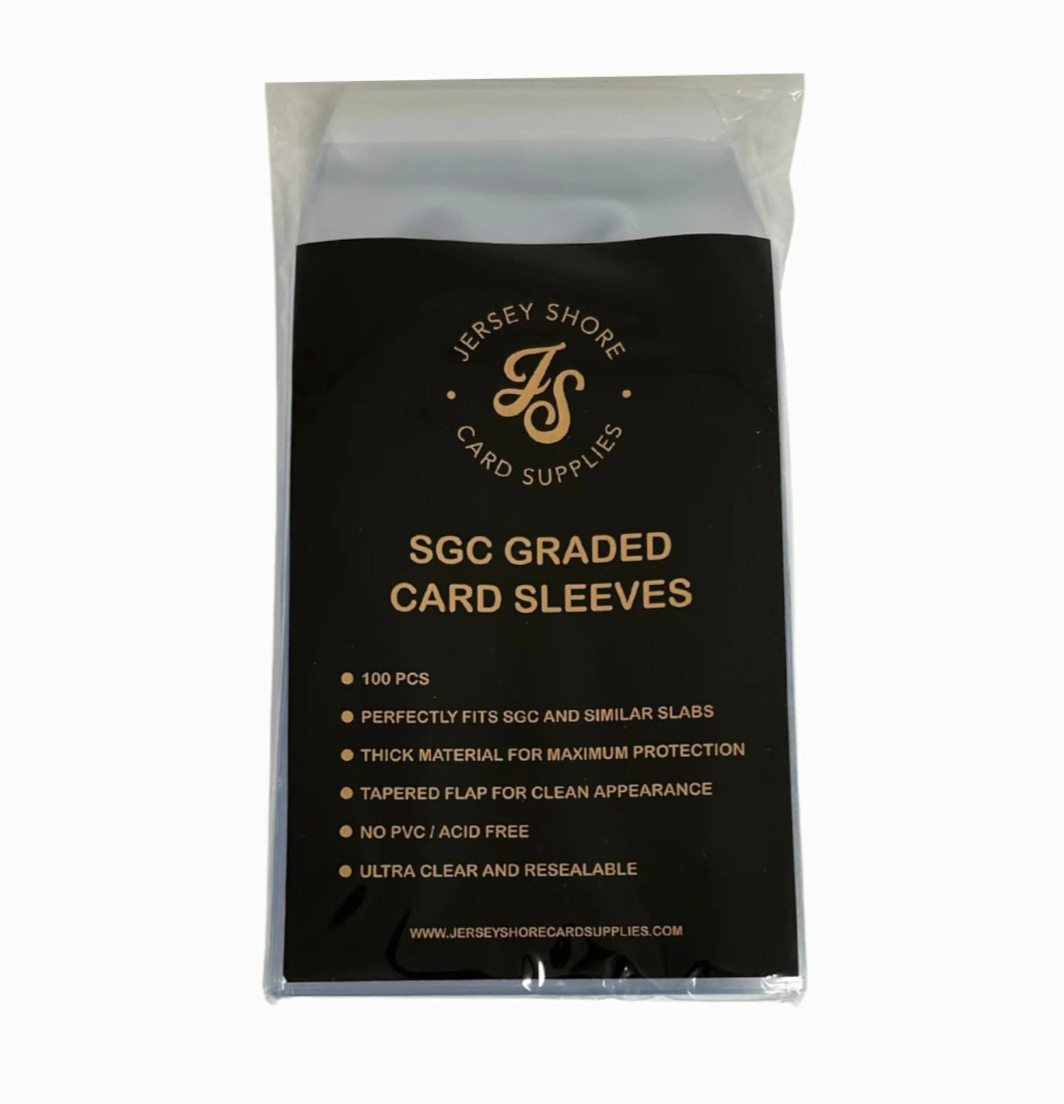 SGC Graded Card Sleeves from Jersey Shore Card Supplies are designed to perfectly fit SGC graded slabs. Each pack contains 100 graded card sleeves made from ultra-clear polypropylene and features a resealable strip. All graded card sleeves are acid/pvc free!